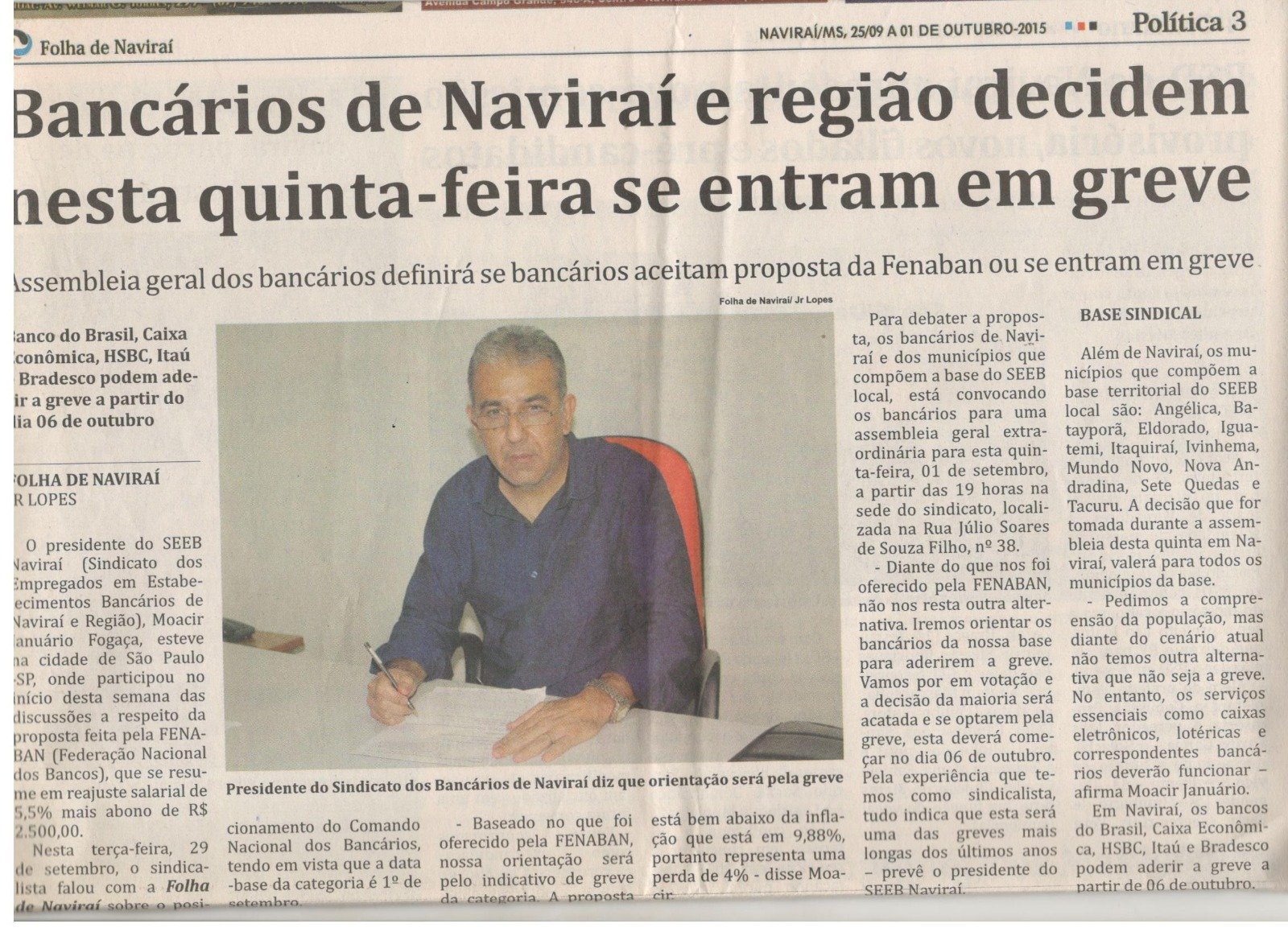 O Sindicato dos Empregados de Estabelecimentos Bancários de Naviraí foi fundado em 05/08/1985.